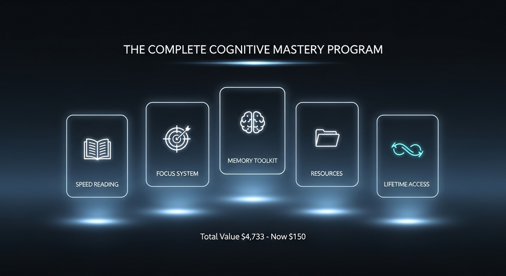 This is the full, integrated curriculum designed to give you a decisive cognitive edge in reading, focus, and memory. Here is the complete program you receive today:
